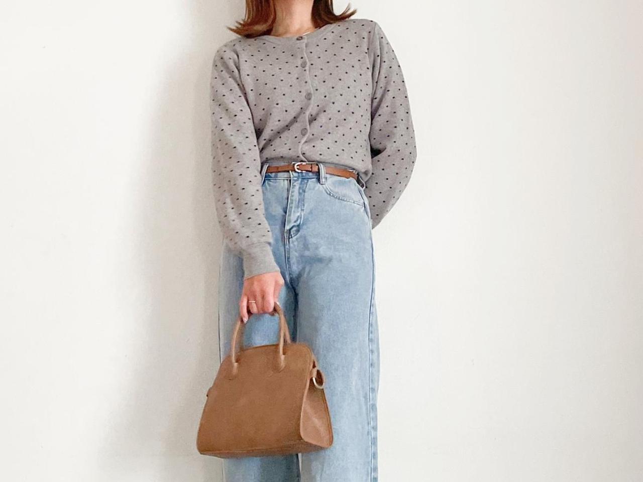 ドットの可愛い印象を、デニムでカジュアルダウン。カジュアルな着こなしにもマッチし、大人な抜け感も出せます♡