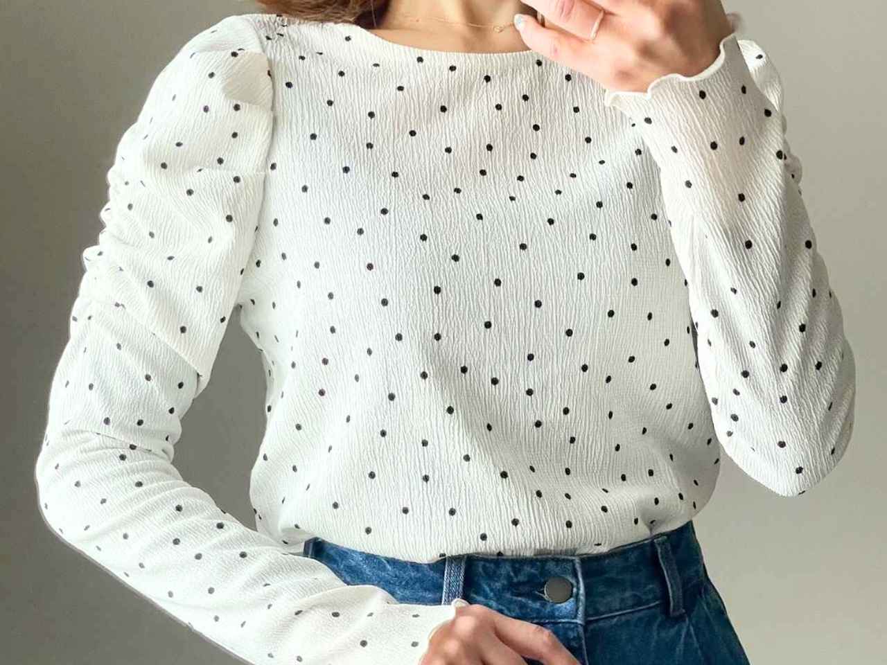 白ベースの生地に黒のドットが大人可愛い♡ ドット柄が小さいので、甘すぎず大人でも合わせやすい!