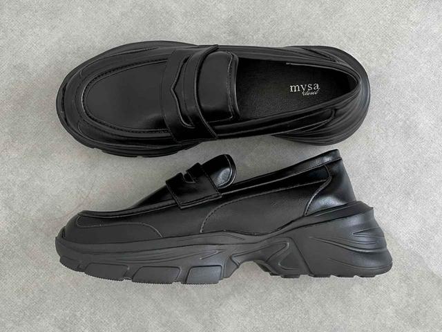 こちらがしまむらのローファースニーカー。人気インフルエンサー田中里奈さんコラボの商品。程よいボリュームのスニーカーソールに、レザー調素材のボディがモードな印象です。