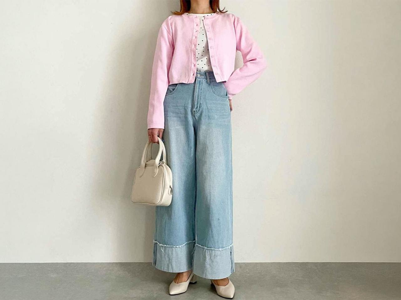 王道デニムコーデもピンクを添えるだけで、華やかに♡ 気軽にコーデに組み込めるカーディガンは、この春のマストアイテムになりそうです!