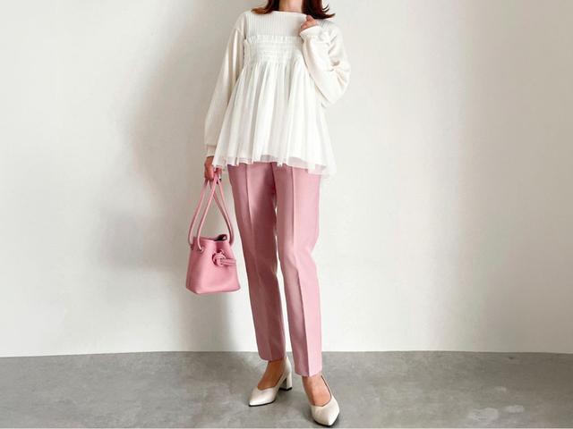 トップスの色味に合わせてオールホワイトもオシャレに決まって可愛いっ♡ 同色繋ぎでも、素材違いのチュールがいい仕事をしてくれます!