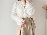 Vネックでスッキリしつつ、中心から少し間をとったところから始まるペプラムシルエットが程よい甘さをプラスしてくれます。