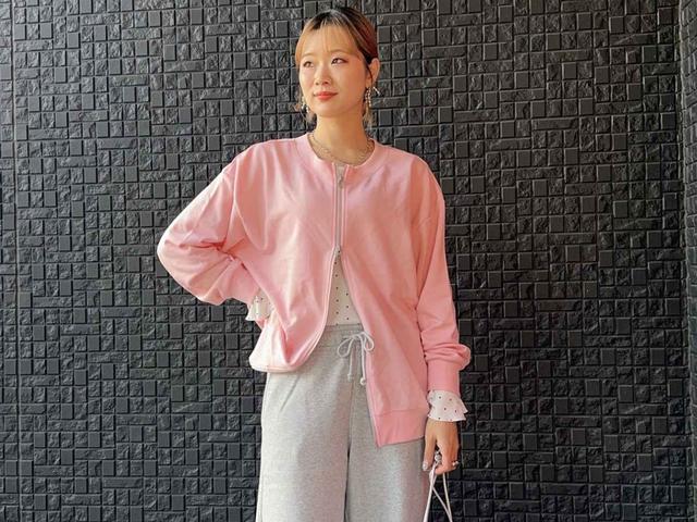 大人も着やすいトレンドピンク♡ ただのカーデではなく、ダブルジップも今っぽいですよね。開け具合やインナーによって、様々な着こなしが楽しめそうです。