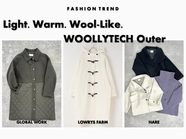 冬のお出かけストレスを軽減し、毎日を快適にしてくれる新素材【ウーリーテック】。今回は、キルティングが今っぽい異素材ミックス、大人可愛いダッフル、大きな襟が印象的なミドル丈アウターの3型をピックアップしました。ウールライクなきちんと感がありながら、軽くて暖かい着心地はデイリー使いにもぴったり。この冬のアウター選びの参考に!