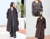 膝下まで伸びるロングシルエットに、整然と並ぶゴールドボタンがクラシックな気品を添えるロングコート。ワントーンの中に肌なじみのいいベージュを差し込み、大人の余裕を感じさせる都会的なムードに仕上げました。