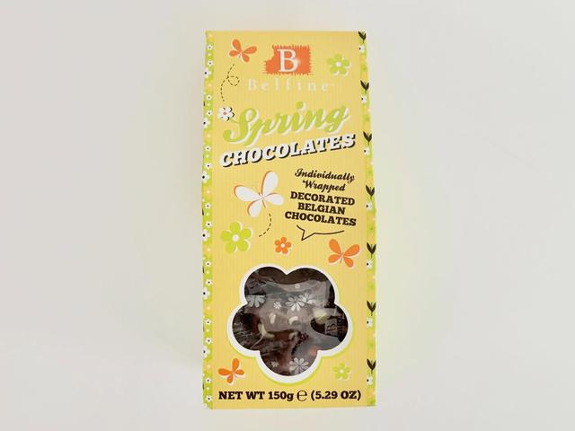 ウサギとアヒルの形をしたチョコレートが入ったアソートバッグの「ベルフィン バニー & ダックミニレリーフバッグ 150g」。チョコレートは10個入りです。パッケージは、やわらかい黄色に蝶々やお花が描かれた、春を感じられるようなデザイン。@ftn_picsレポーターHaruさんは「パッケージに一目惚れ」して購入したそうです。