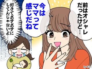 娘を出産し、慣れない育児に日々奮闘している私の知人・香織さん(仮名)。どうしても自分の身だしなみは後回しになっていましたが、そんな姿を見た義妹から「ママって感じになったね」と言われてしまい……胸がざわつく香織さんでしたが、義母からの予想外の言葉で救われました。