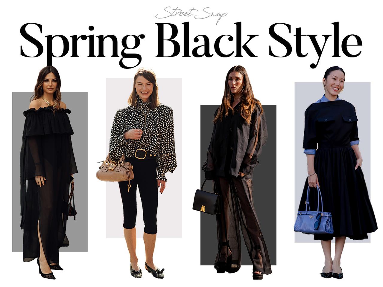 シーズンレスに活躍する「ブラック」も、春には軽やかにまといたいもの。素材やシルエット、さりげない肌見せが、重厚な黒にやわらかな空気をもたらします。洗練と抜け感を両立した着こなしを、最新ファッションウィークのストリートスナップからピックアップ。
